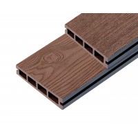 Террасная доска ДПК (из древесно-полимерного композита) – это, пожалуй, наиболее практичный вид покрытия, применяемого для настила на открытом воздухе. Состав террасной доски ДПК: древесина лиственных пород (65%), первичный полиэтилен или ПВХ (35%) и функциональные добавки (5%). Благодаря такому составу террасная доска ДПК равномерно окрашена по всей площади и имеет однородную структуру, без сучков, трещинок, микропор, мест внутренних напряжений и других минусов, которые бывают у досок из натурального дерева.